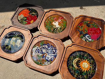 掐絲琺瑯&螺鈿胡桃木杯墊工作坊 (the flowery. 圖案 / Wonder Garden 圖案)